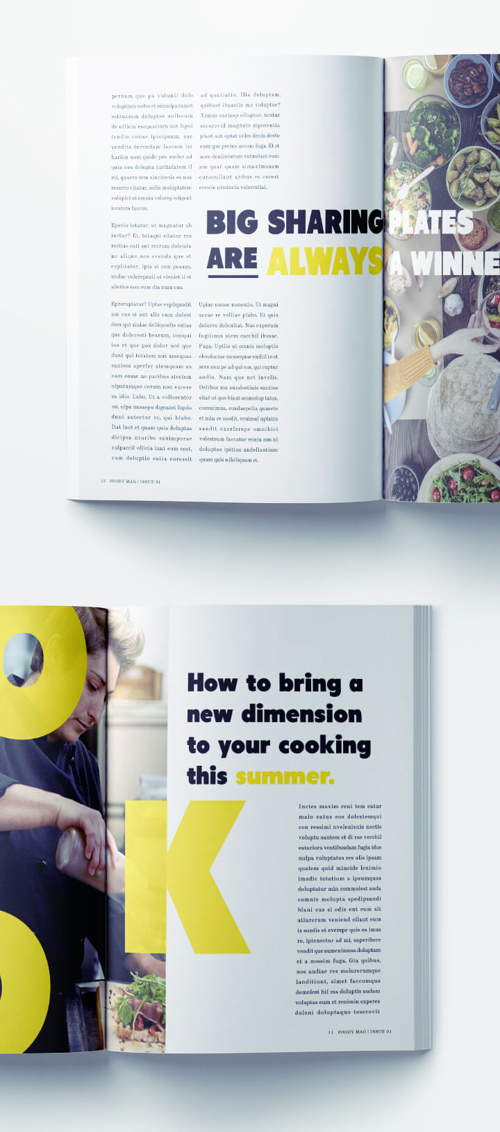 Food Magazine Layout Template - Yellow Typography Magazine Spread Modern Design
